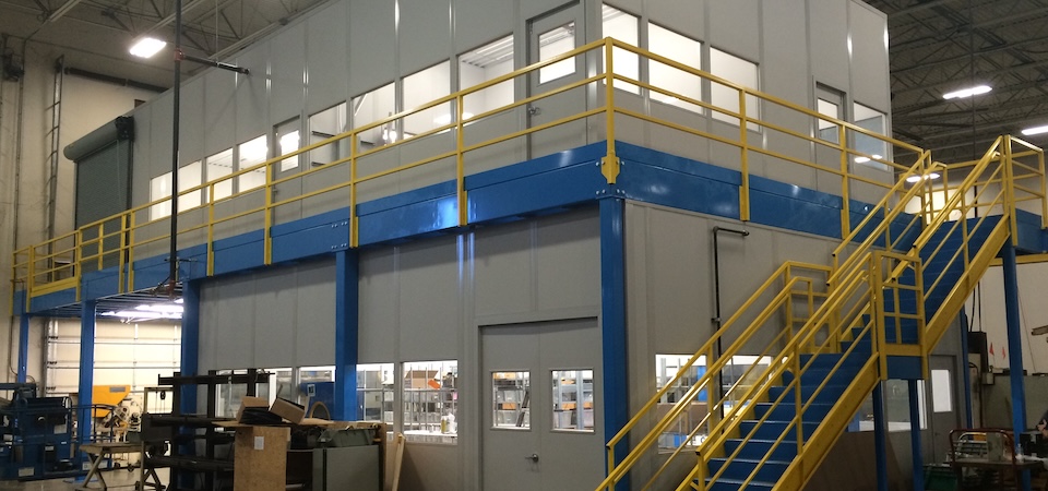 Our distributor worked very closely with the client to gather exact dimensions to ensure a proper fit for mezzanine while also coordinating with PortaFab to ensure the modular wall systems secured a correct fit on each level.